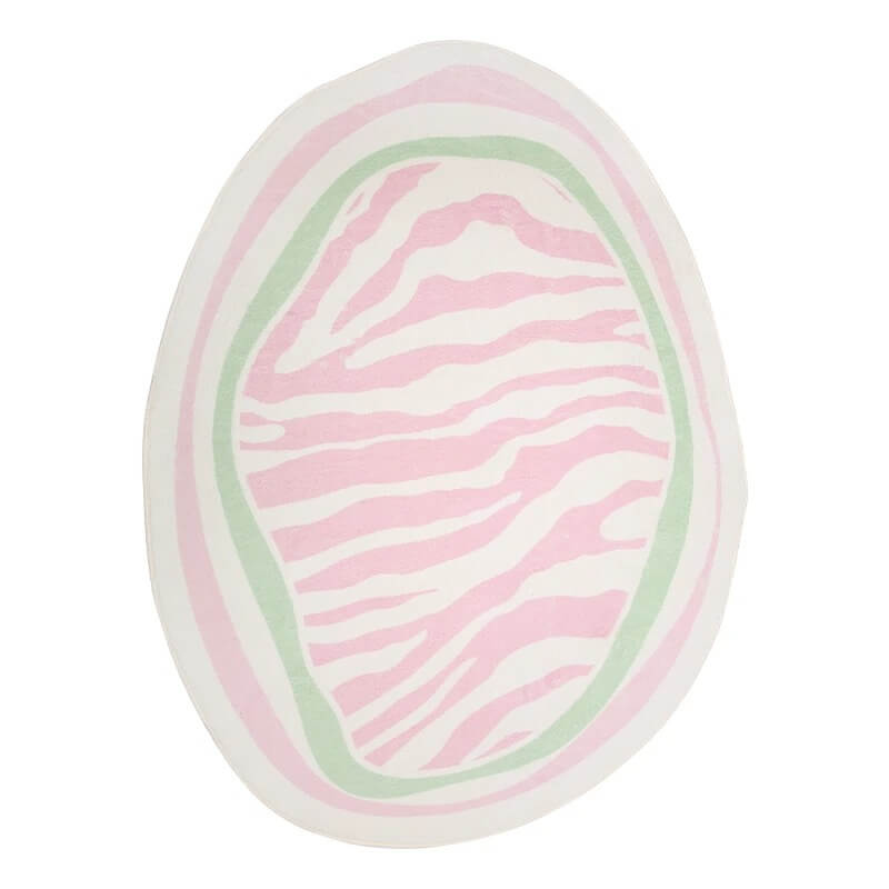 Ta urocza, owalna dywanik akcentowy z pastelowym, różowym wzorem zebry wykonana jest z puszystego włókna...