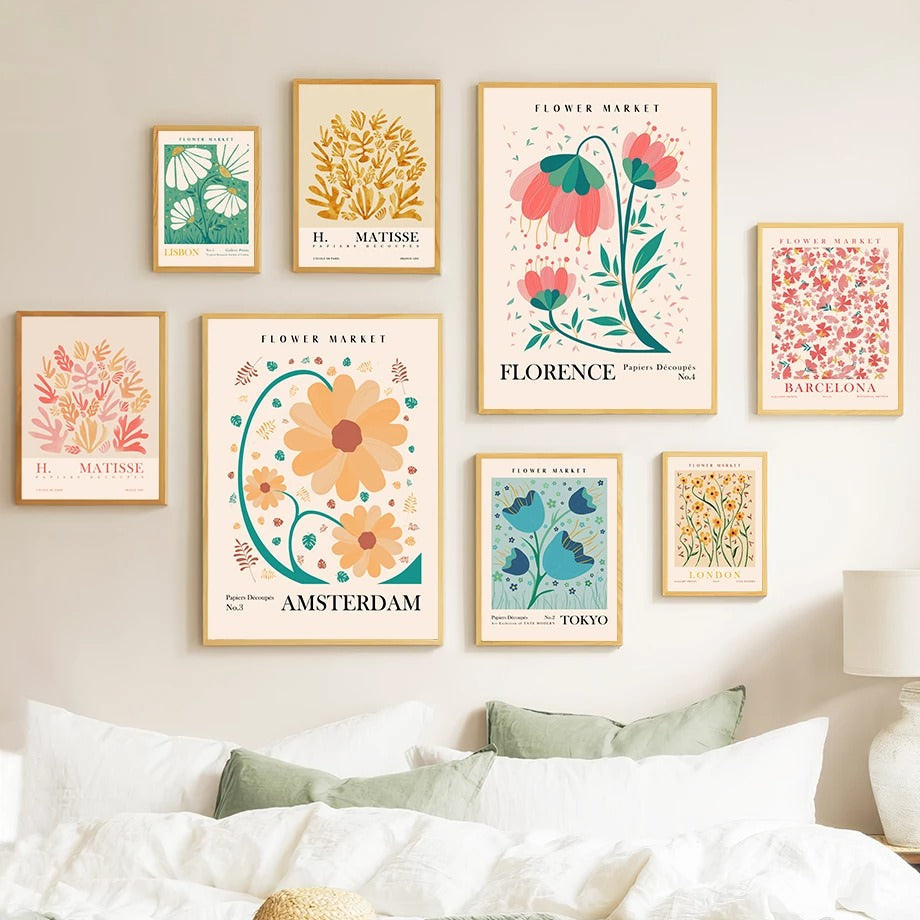 Ozdób ściany swojej sypialni estetycznymi wycinankami inspirowanymi obrazami Matisse’a oraz vintage duńskimi pastelowymi plakatami z...