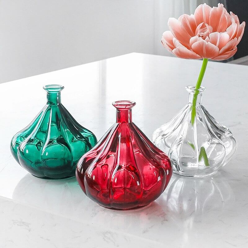 Matowe, kolorowe szklane wazony w kształcie grzyba to idealny prezent lub piękna dekoracja na biurko...