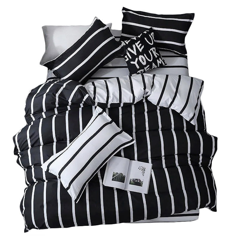 Podnieś poziom swojej estetycznej sypialni dzięki temu prostemu, minimalistycznemu zestawowi pościeli w czarno-białe paski. Prosty...
