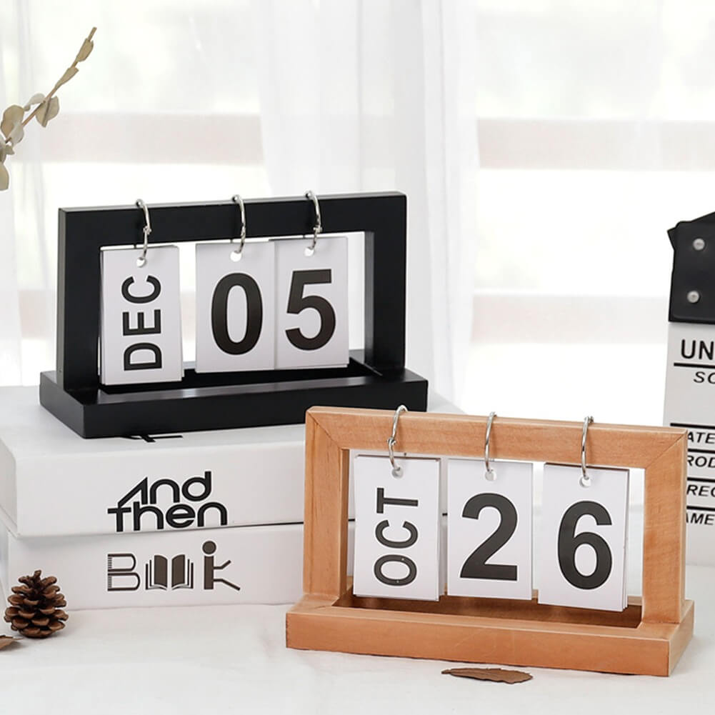 Ozdób swoje biurko tym drewnianym kalendarzem z przewracanymi kartkami. Śledź datę z łatwością i w...