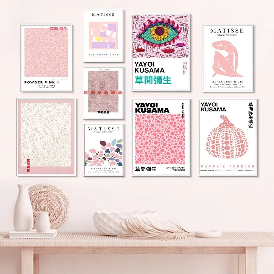 Ta kolekcja obrazów na płótnie zawiera wycinki i abstrakcje dzieł japońskich artystów na odważnym, pasteloworóżowym...