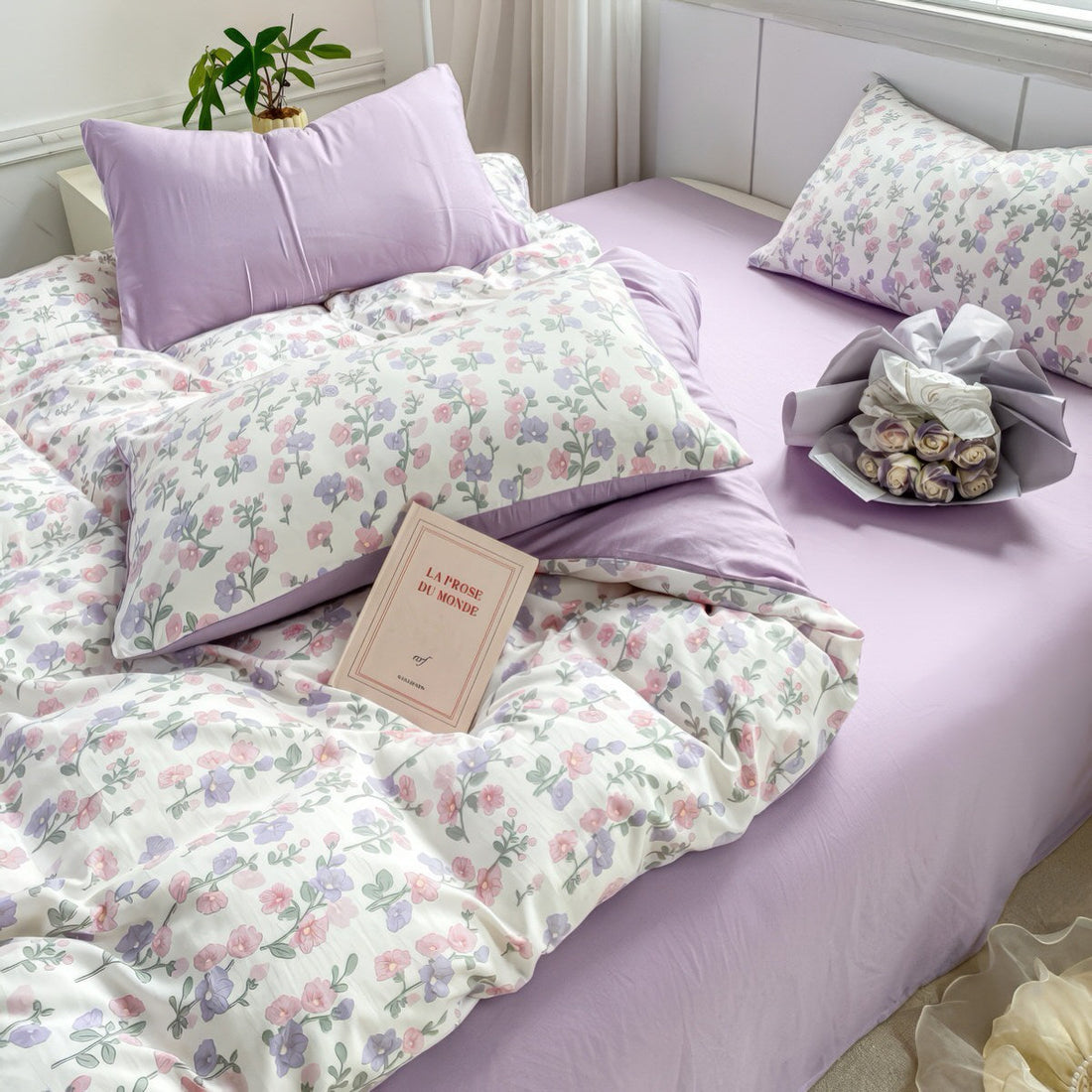 Zestaw pościeli z miękkich fioletowych kwiatów