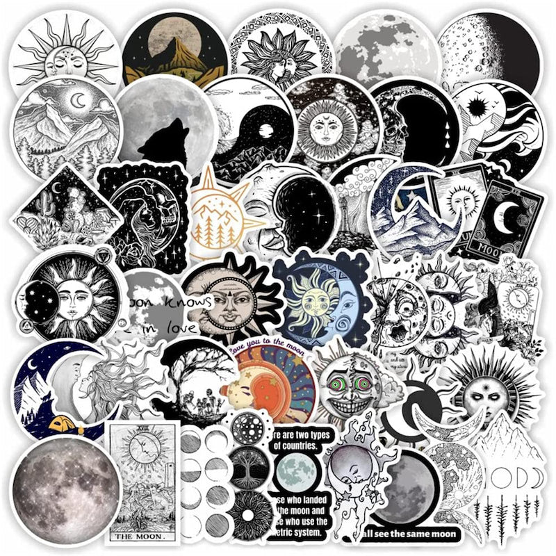 Zestaw nakletek z monochromatycznym słońcem i księżycem
