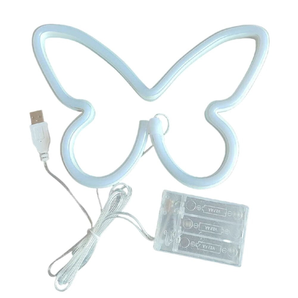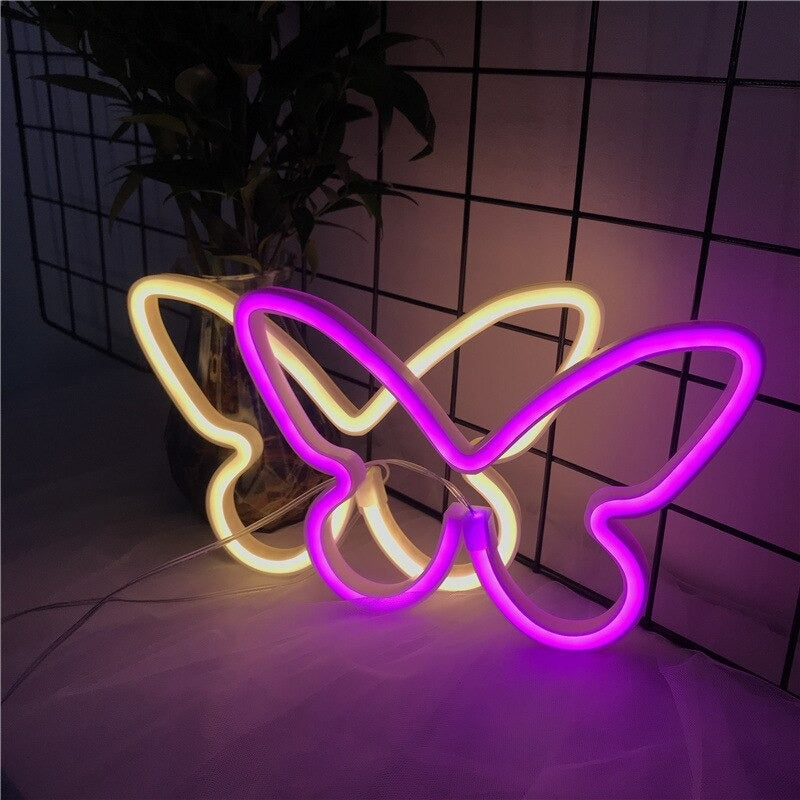 Neonowy napis na ścianę z motylami