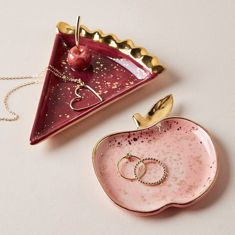 Ta estetyczna, urocza ceramiczna tacka na biżuterię w kształcie wiśniowego ciasta to stylowy sposób na przechowywanie pierścionków i zawieszek, wprowadzając do Twojego pokoju nutę delikatności.