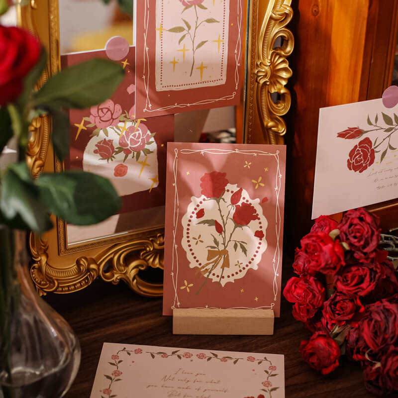 Kolorowa kolekcja pocztówek z czerwonymi różami Coquette