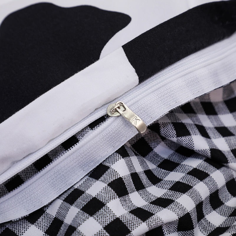 Odmień swój pokój dzięki pościeli w estetyczny wzór w krowie łaty. Idealnie pasuje do pokoju w stylu indie aesthetic.