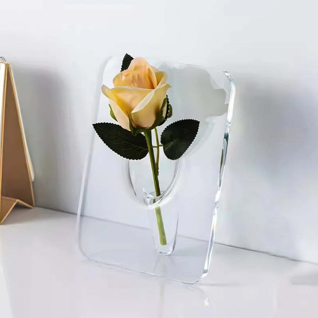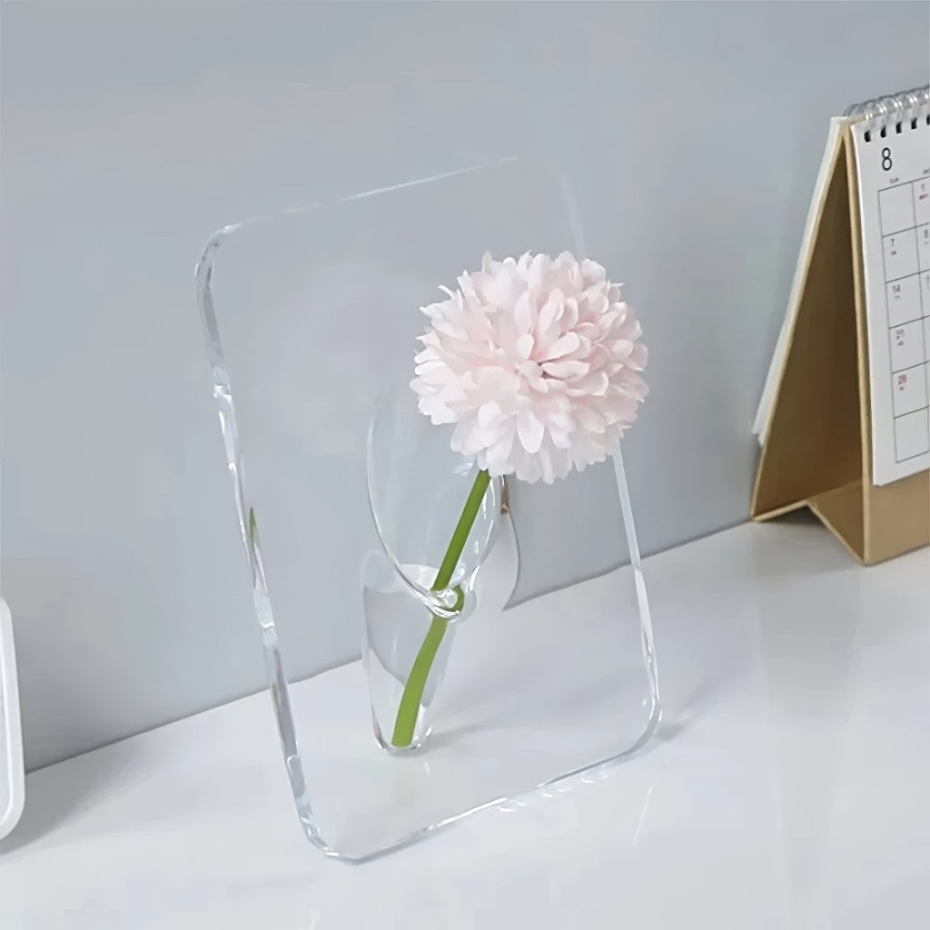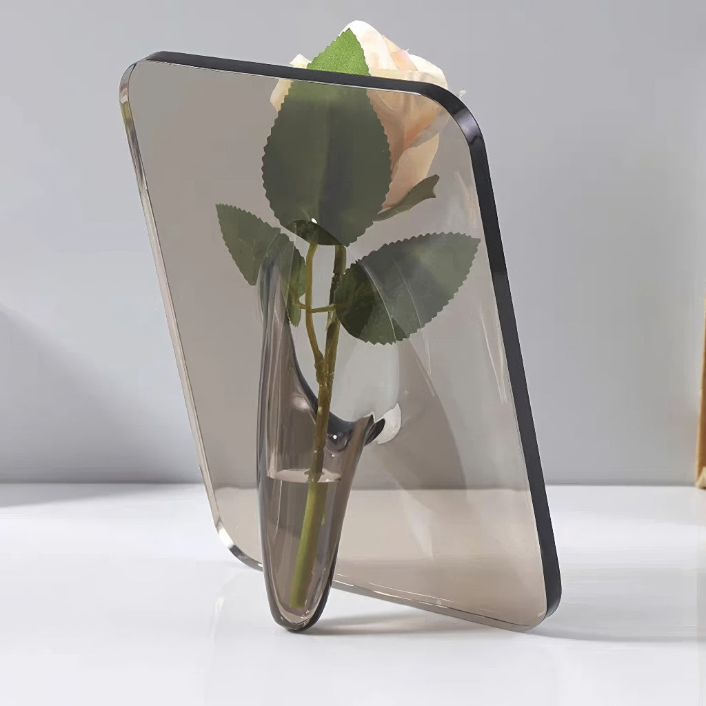 Minimalistyczny wazon na kwiaty z akrylu o zakrzywionym, tunelowym kształcie. Idealny do nowoczesnych, minimalistycznych i futurystycznych aranżacji wnętrz.