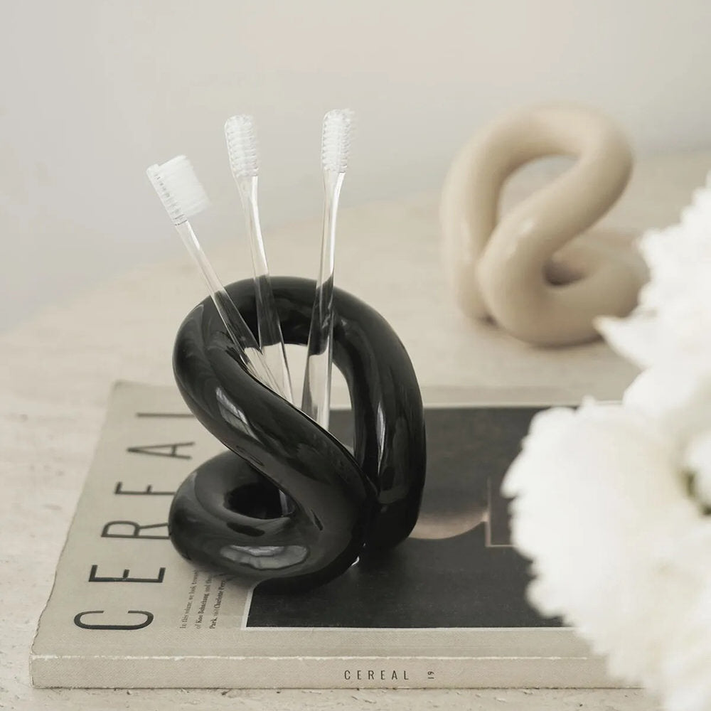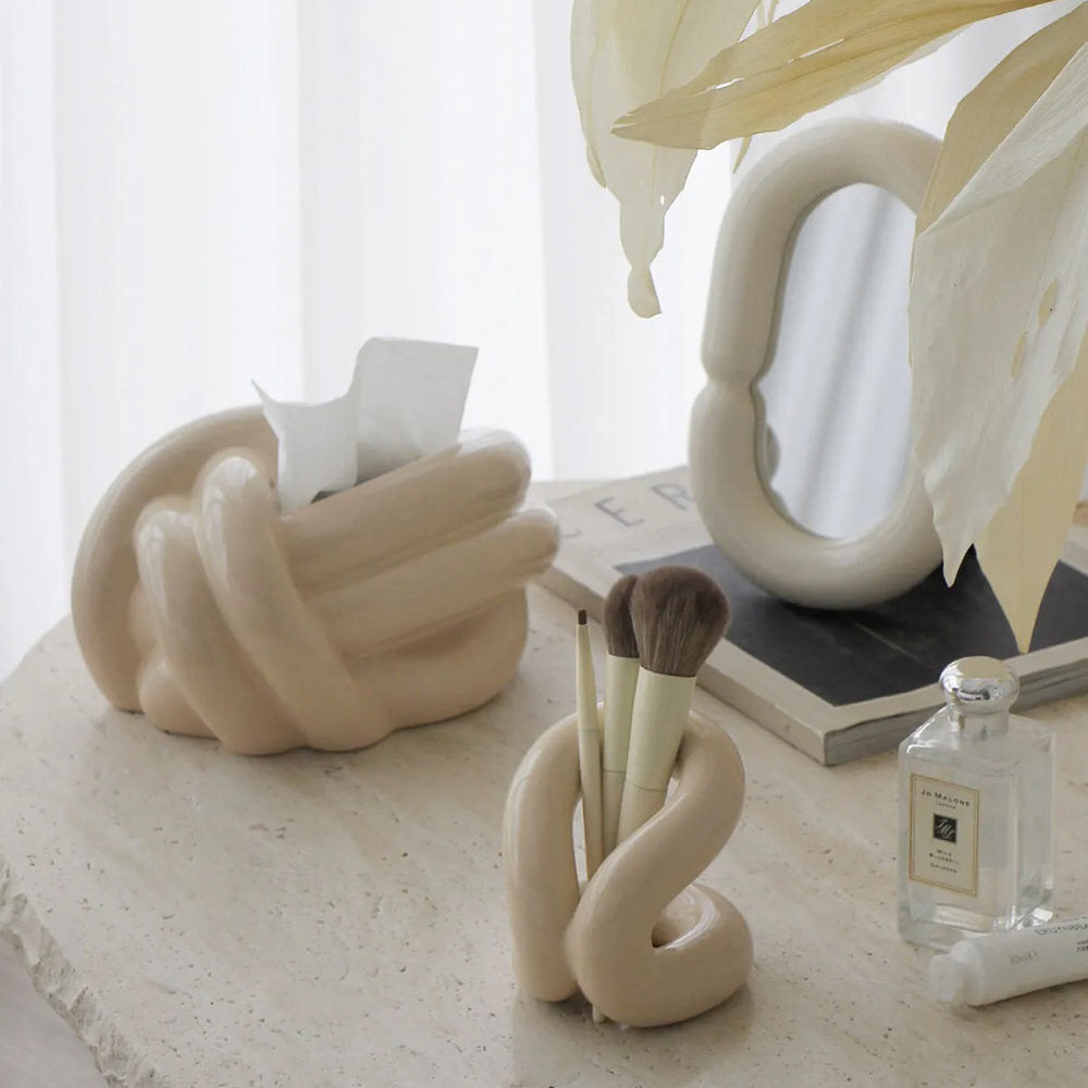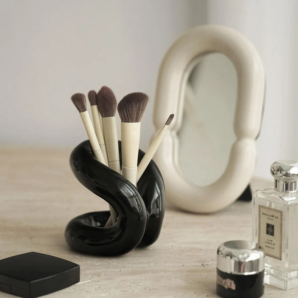 Stylowo zorganizuj swoje pędzle do makijażu dzięki temu falistemu, ceramicznemu pojemnikowi! Zachwyca kobiecym charakterem i estetyką w stylu "vanilla girl", a jego unikalny kształt pozwala zaoszczędzić miejsce i utrzymać porządek na toaletce.