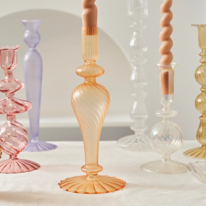Szykowne francuskie świeczniki w stylu old money, które wprowadzą do Twojego wnętrza nutę vintage'owego luksusu. Kolekcja świeczników o różnych wykończeniach szkła w odważnych, pastelowych odcieniach.