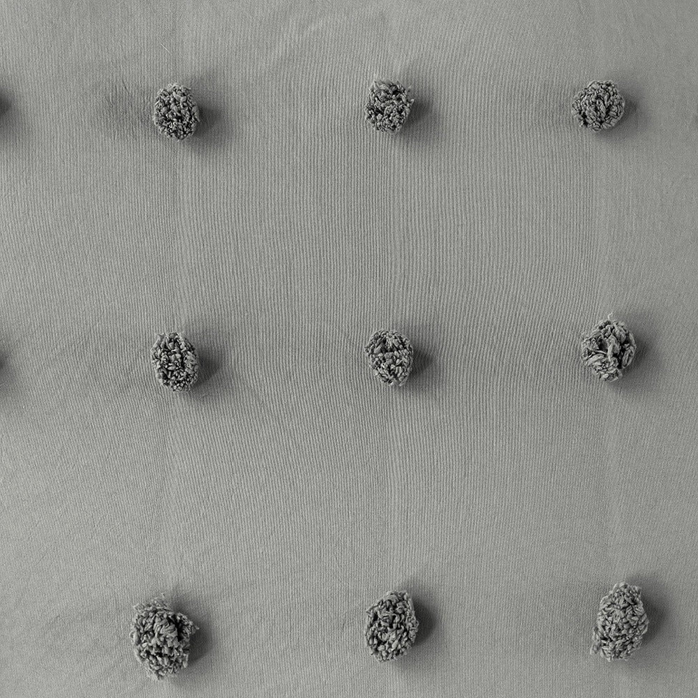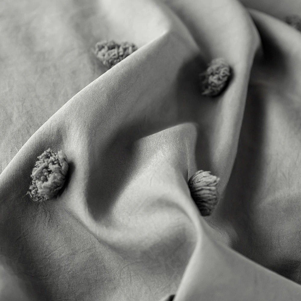 Szara zasłona z pomponami zestaw pościeli