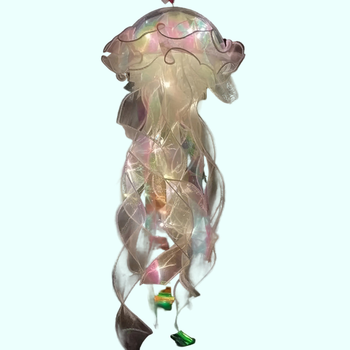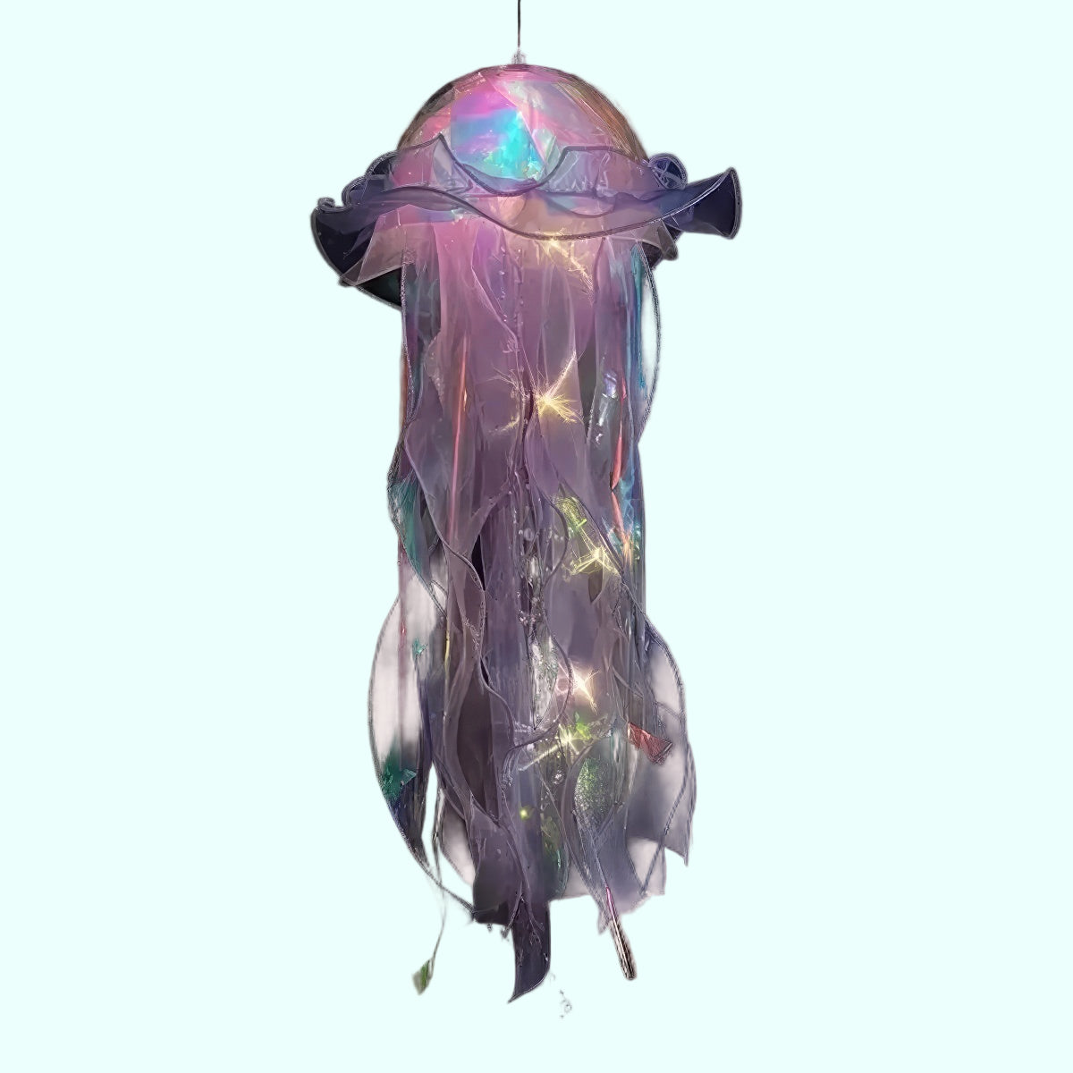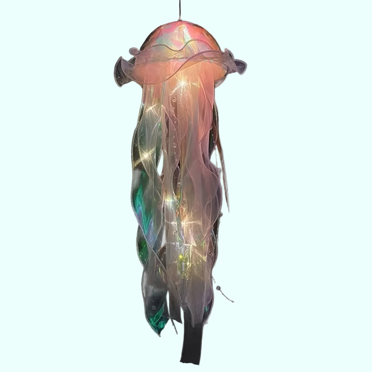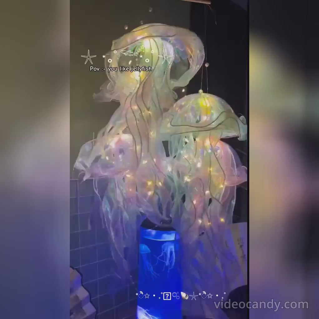 Wprowadź do swojego pokoju odrobinę magicznego, oceanicznego klimatu dzięki wiszącej dekoracji LED w kształcie meduzy. Delikatne, półprzezroczyste wstążki oraz miękkie światło diod tworzą efekt spokojnie unoszącej się w wodzie meduzy.