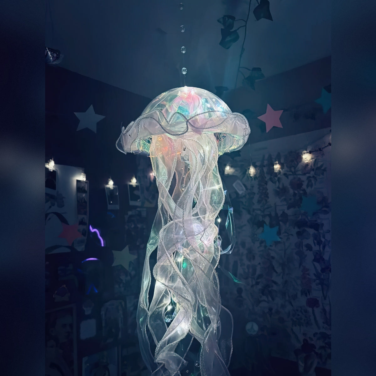 Zawieś meduzę na suficie, w rogu pokoju lub nad łóżkiem, aby uzyskać miękkie, nastrojowe światło. Doskonale sprawdzi się w sypialni, pokoju dziecięcym, kąciku do czytania, a także jako dekoracja na imprezy tematyczne.