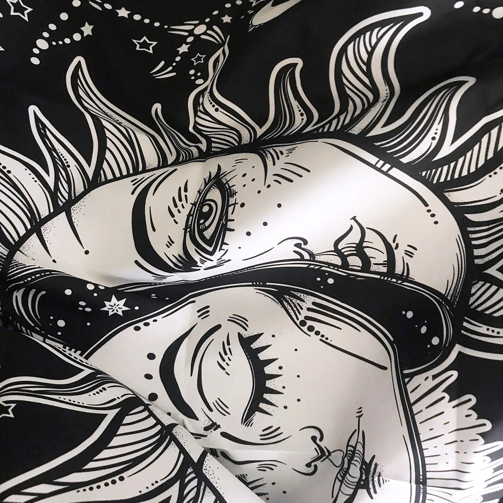 Indyjska tapeta typu "księżyc wyłaniający się ze słońca". Unikalna grafika: biały na czarnym, czarny na białym oraz wielokolorowa.