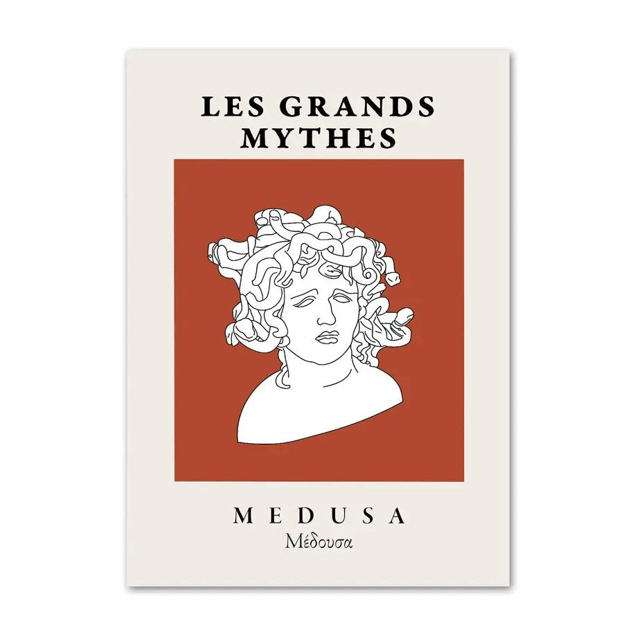 Ozdób ściany swojej sypialni tymi estetycznymi, minimalistycznymi obrazami na płótnie z kolażami mitologicznych postaci. Te plakaty galeryjne doskonale wpiszą się w niemal każde wnętrze w stylu duńskiego pastelu lub minimalizmu.