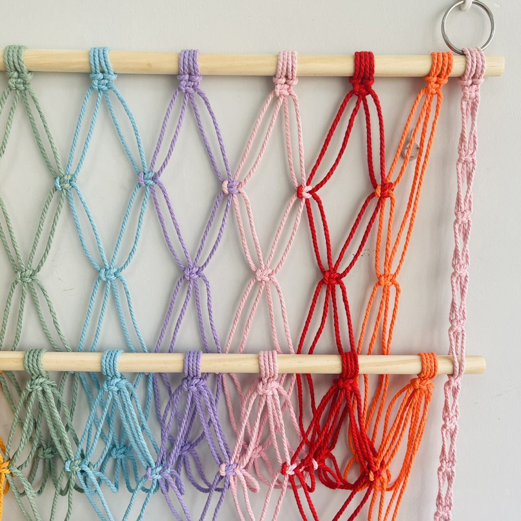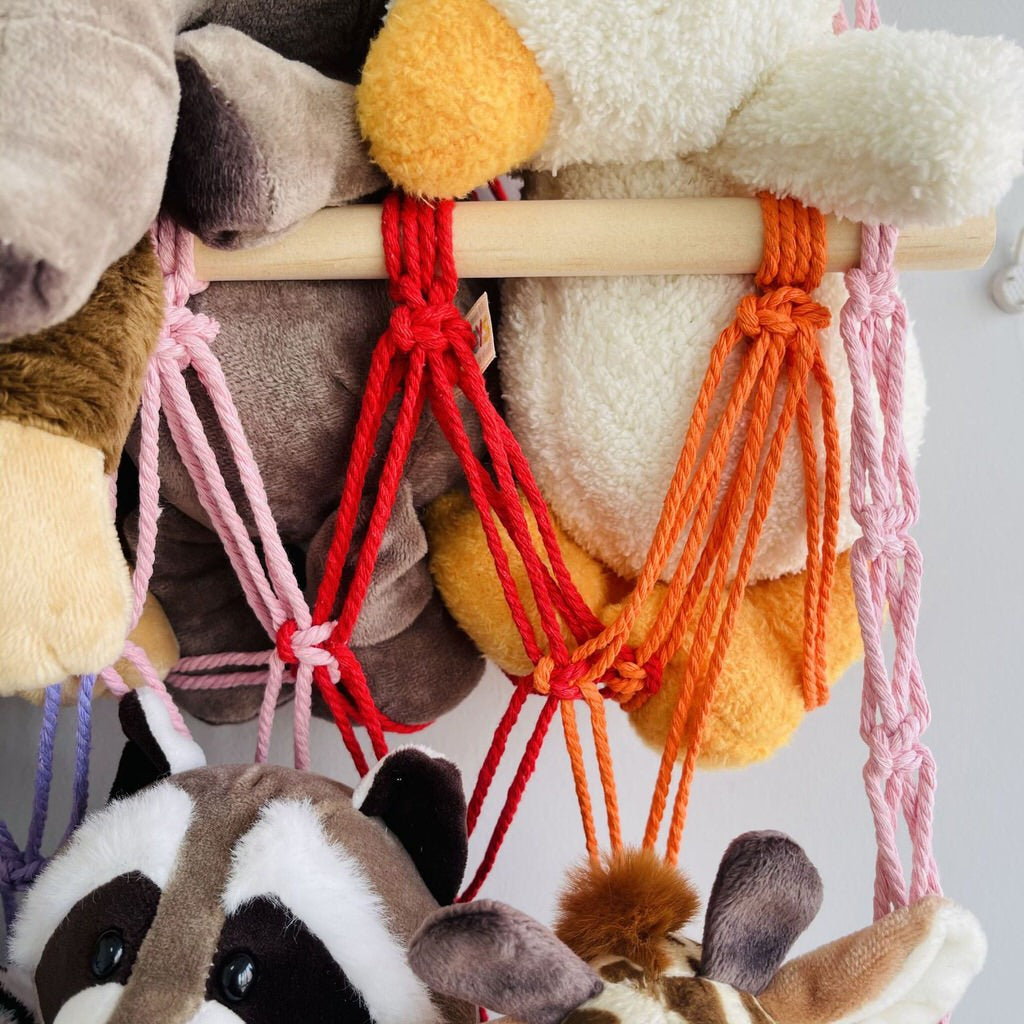 Sieć do przechowywania zabawek na ścianę z makramy