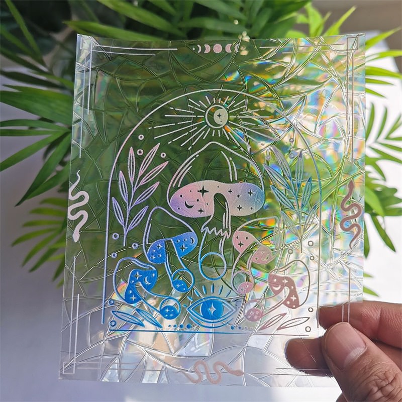 Przezroczysta naklejka na okno z nadrukiem grzybów, która rozprasza pod wpływem słońca tęczowe światło, nadając Twojemu pomieszczeniu wyjątkowy klimat. Ponieważ naklejka nie zawiera kleju, nie ulega zniszczeniu nawet podczas długotrwałego wystawienia na działanie promieni słonecznych. W razie potrzeby można ją z łatwością ponownie przykleić za pomocą wody (zobacz instrukcję).