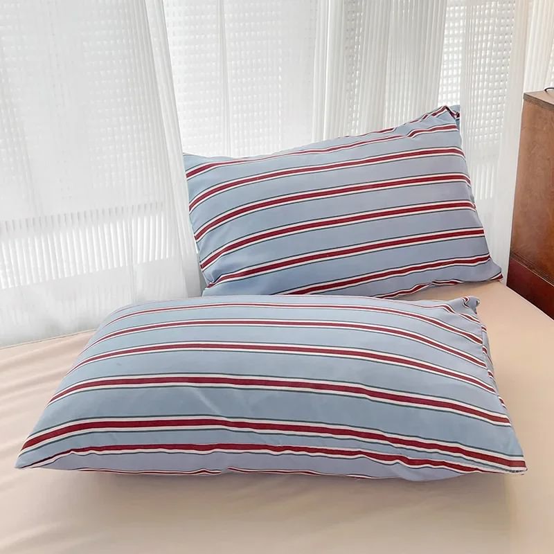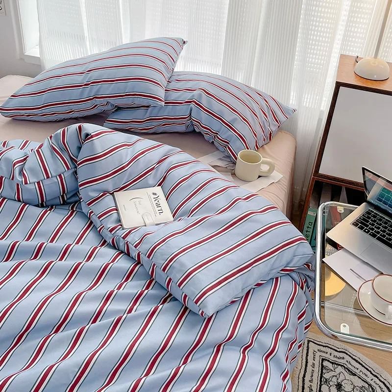 Minimalistyczny czerwony pasek niebieski zestaw pościeli