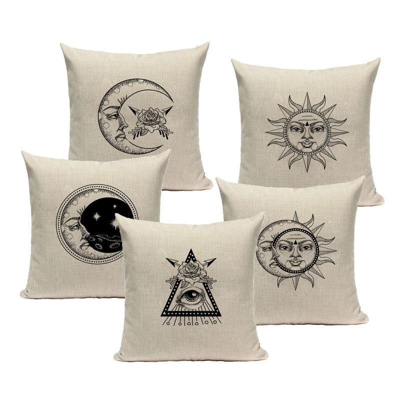 Monochromatyczne pokrowce na poduszki z motywem Słońca i Księżyca