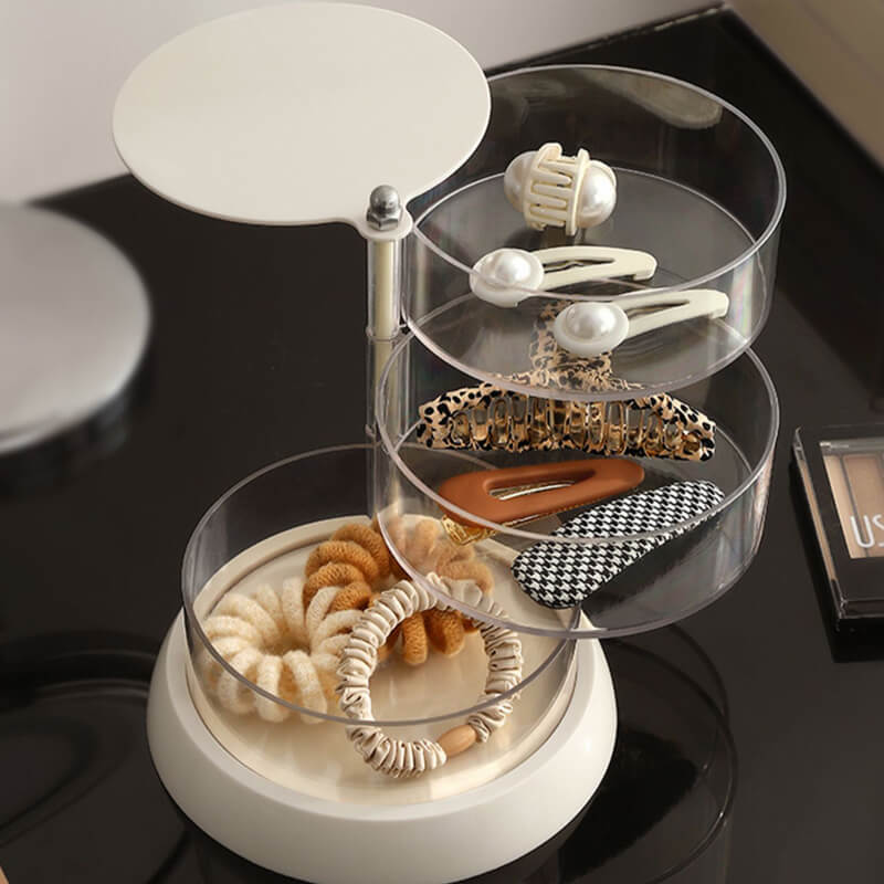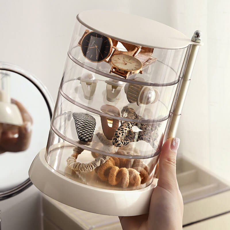 Ten uroczy, wielopoziomowy organizer na biżuterię w formie wieży to idealny sposób na uporządkowanie Twojej biżuterii. Dzięki wielopoziomowej konstrukcji, praktycznemu systemowi obrotowemu oraz dużej pojemności, z pewnością doda każdemu pomieszczeniu eleganckiego charakteru.
