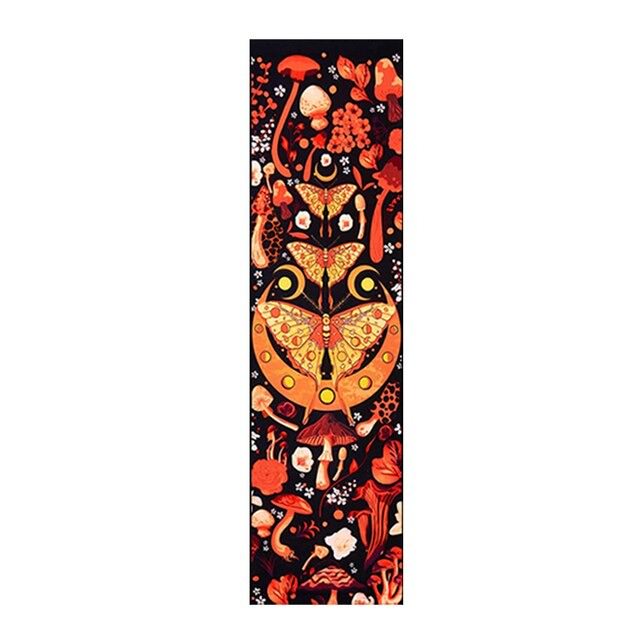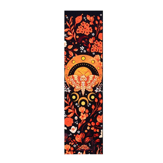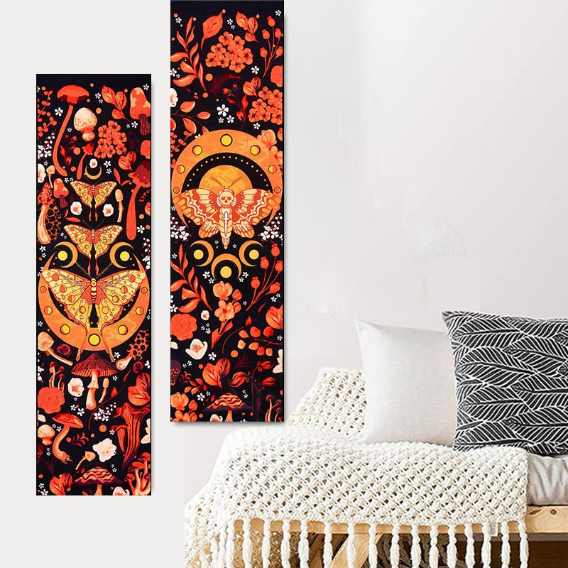 Pionowa, wisząca tkanina dekoracyjna z motywem ćmy w mglistą noc w pomarańczowych tonacjach. Tkaniny dekoracyjne na ścianę potrafią w jednej chwili odmienić wygląd Twojego pokoju! Są lekkie, więc łatwo je powiesić na ścianie lub suficie, a także trwałe, dzięki czemu można ich używać jako koca na zewnątrz lub obrusu.