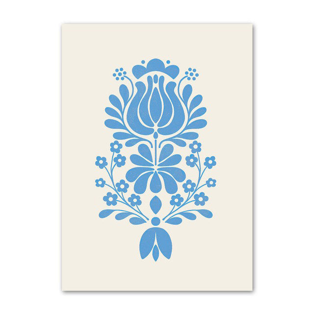 Wprowadź do swoich ścian delikatny, pastelowo-niebieski akcent dzięki obrazom na płótnie Flower Market z motywem kwiatowym. Idealnie pasuje do każdego pomieszczenia w stylu boho, a także świetnie komponuje się z innymi dekoracjami ściennymi w stylu boho i w niebieskiej kolorystyce.