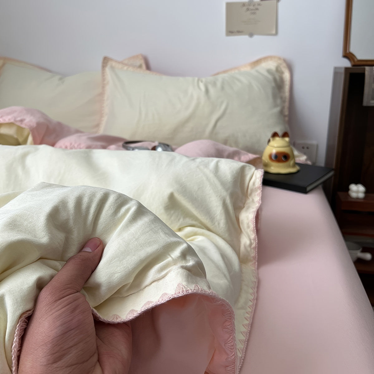 Zestaw pościeli w jasnoróżowe i żółte pastele