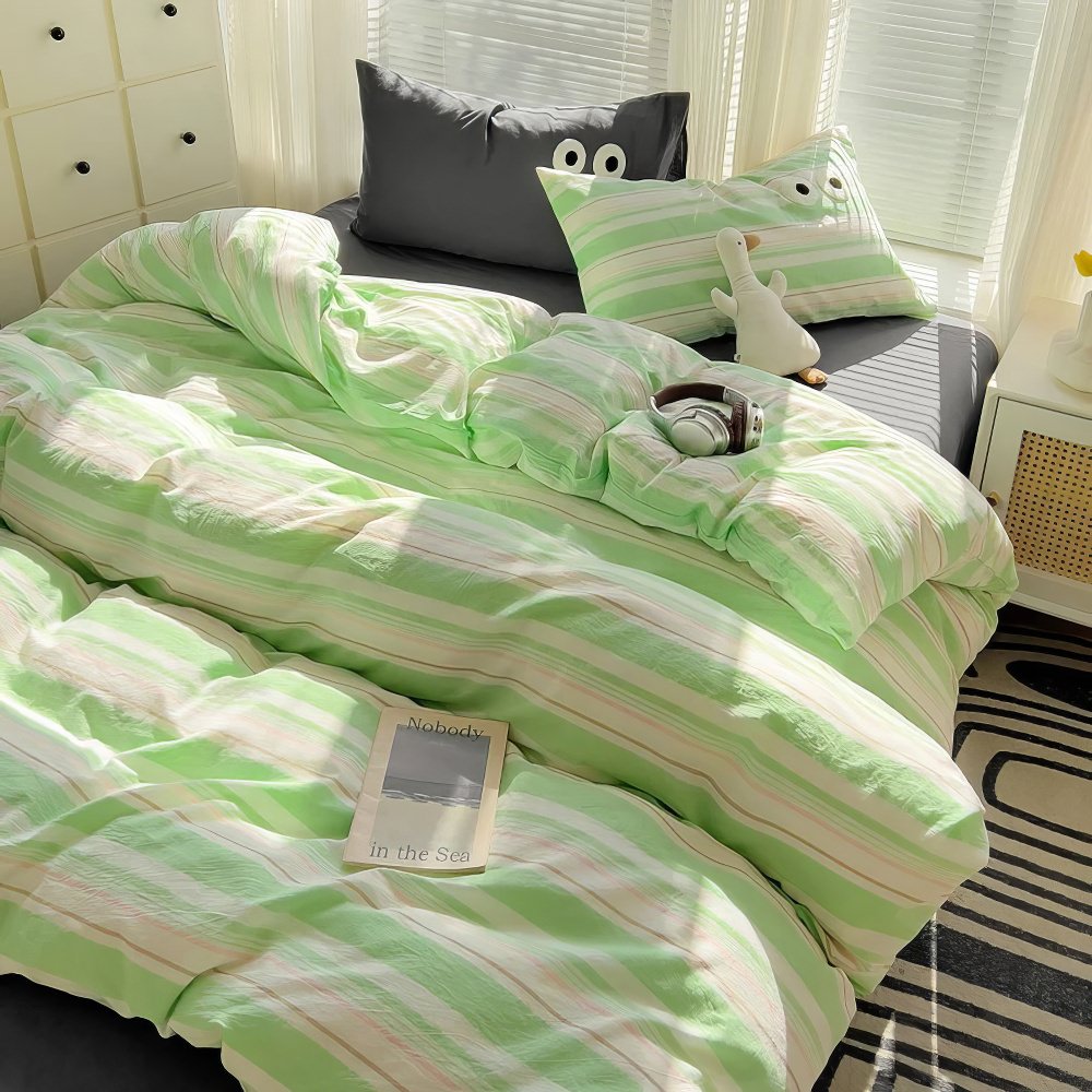 Zestaw pościeli w stylu retro z pasiastymi wzorami