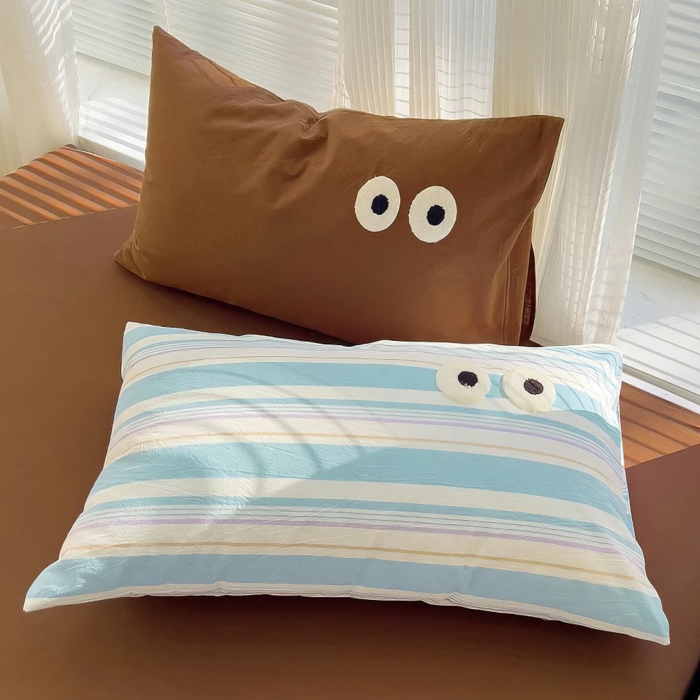 Uroczy i czarujący komplet pościeli z pastelowymi, poziomymi paskami, retro prześcieradłami i poszewkami na poduszki z tuftowanymi oczami przypominającymi pluszaki. Lekka tkanina sprawia, że komplet idealnie nadaje się na każdą porę roku i nie wymaga prasowania! Doskonały wybór do wnętrz inspirowanych estetyką retro.