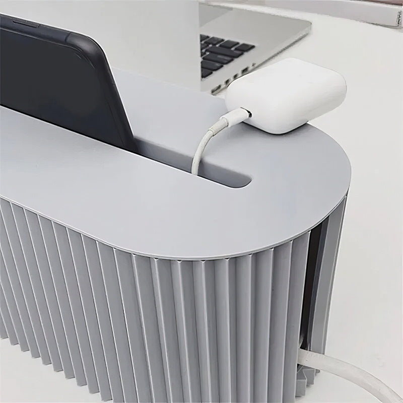 Pożegnaj się z niekończącymi się splątanymi i nieporządnie ułożonymi kablami dzięki naszemu Plisowanemu Organizerowi Przewodów i Listwy Zasilającej! Koniec z poszukiwaniem odpowiedniej ładowarki czy plątaniem się w przewodach. Nasz organizer zapewnia dedykowane miejsce na wszystkie Twoje kable do ładowania i listwy zasilające, dzięki czemu są łatwo dostępne i zawsze pod ręką.