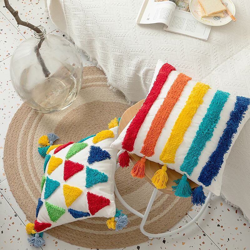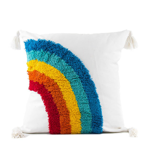 Poszewka na poduszkę z frędzlami w kolorach tęczy