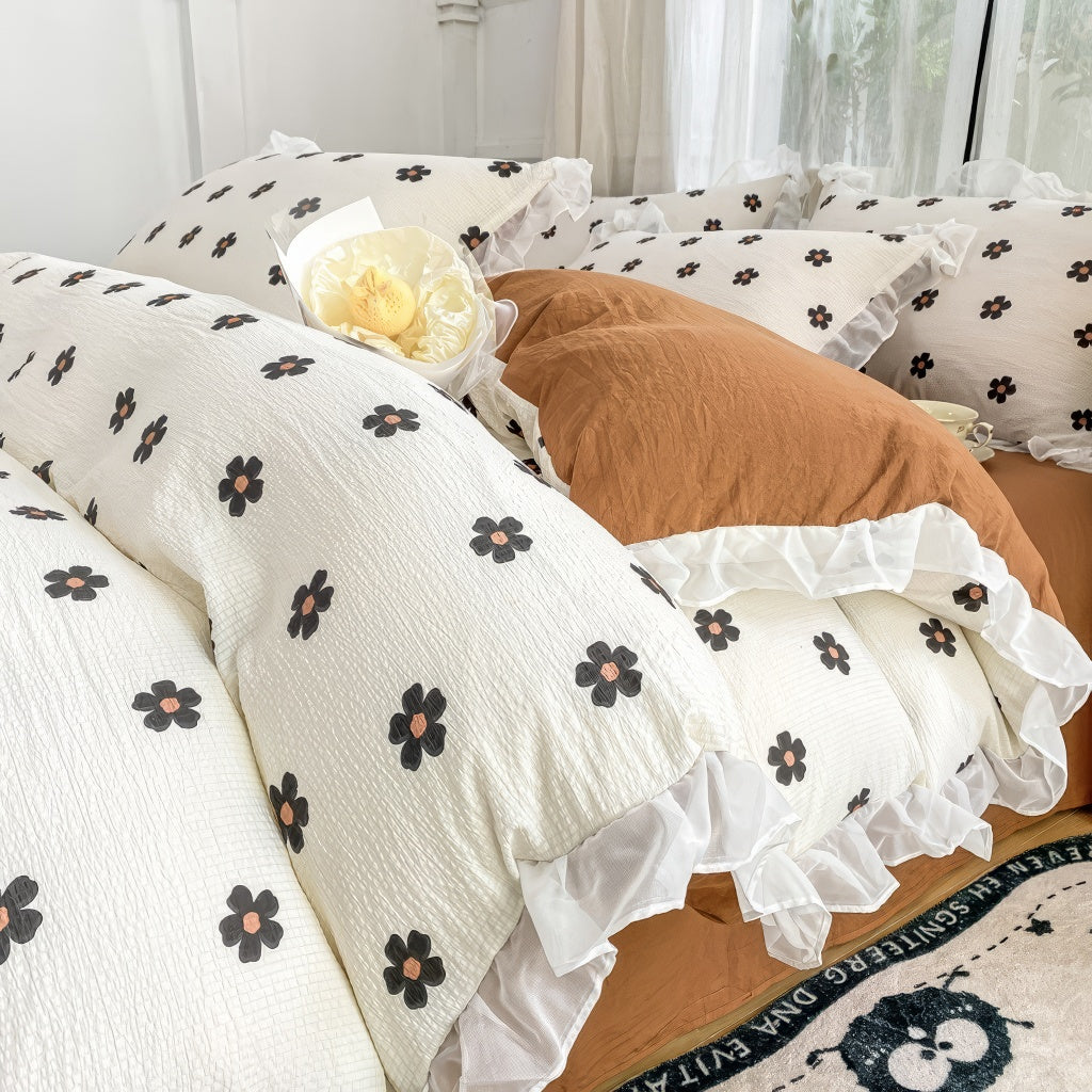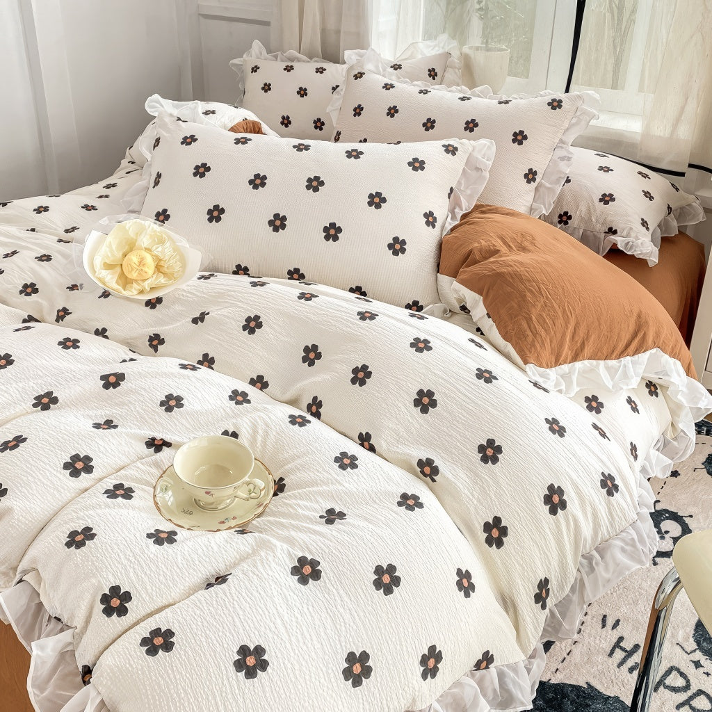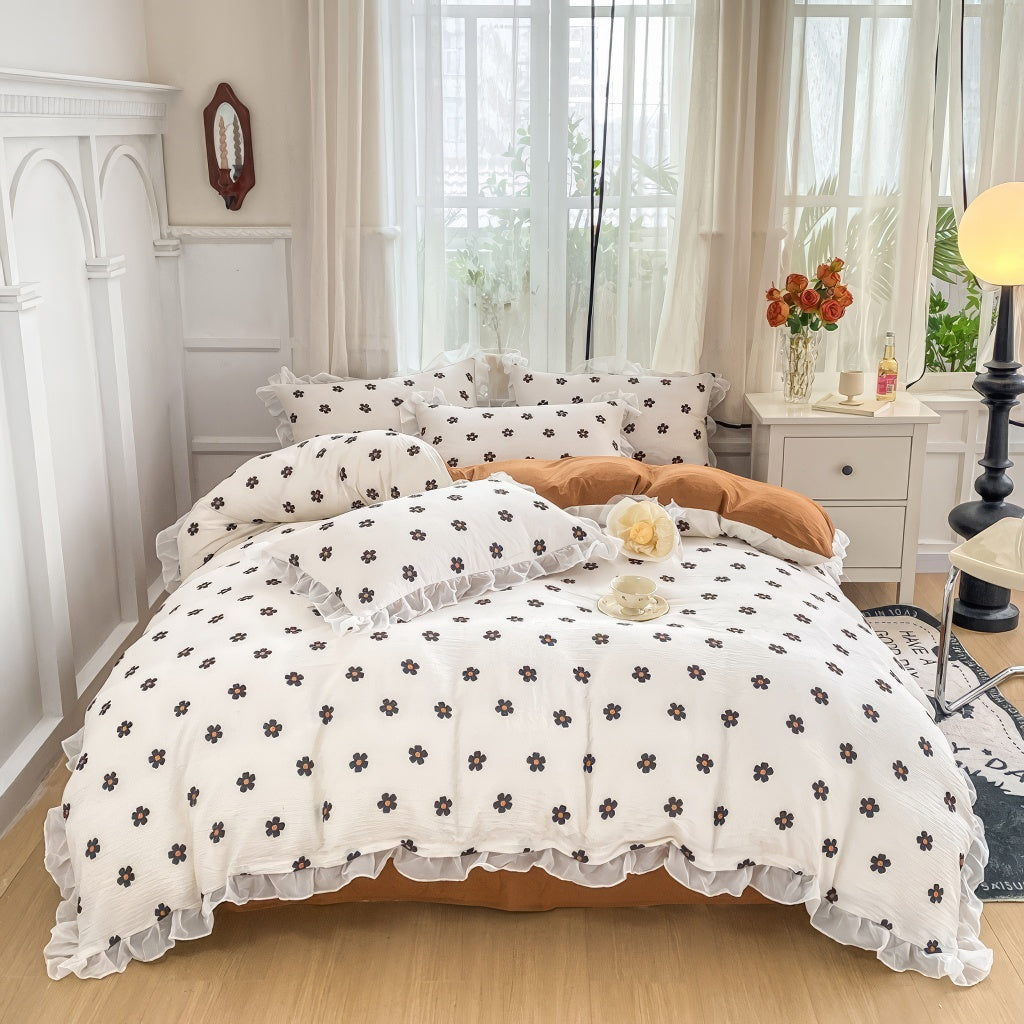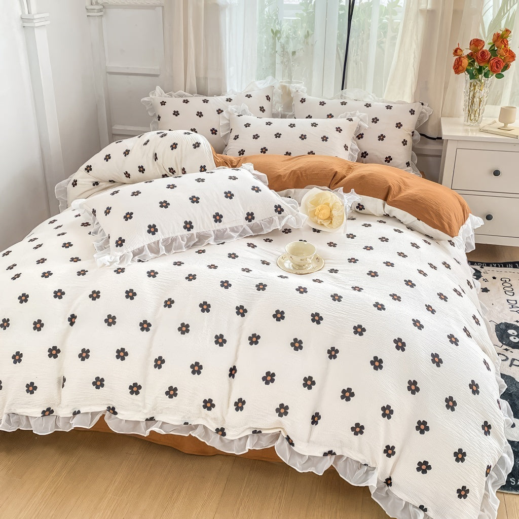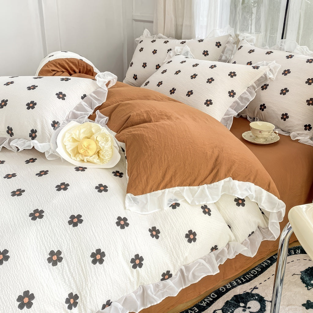 Zestaw pościeli z nadrukiem kwiatów wiosennych z koronką