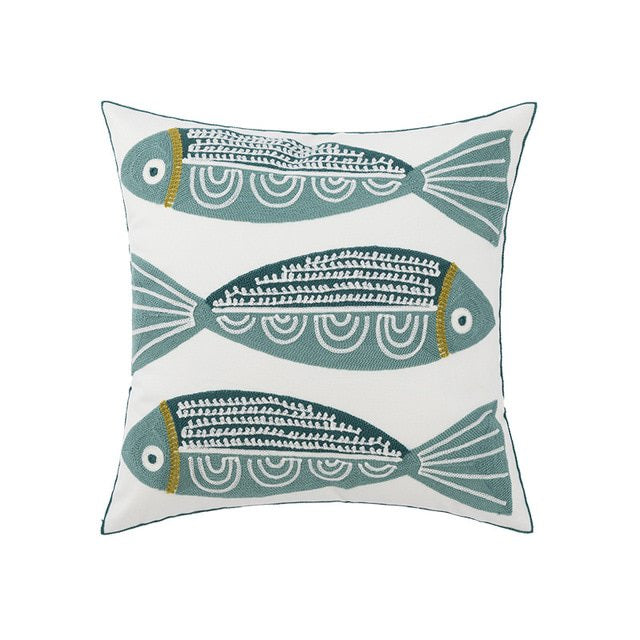 Wyszywane wiosenne motywy kwiatowe oraz geometryczne wzory w odcieniach żółci, szałwiowej zieleni i szarości na wierzchniej stronie oraz miękka tkanina bawełniana na spodzie z ukrytym zamkiem błyskawicznym. Idealna propozycja dla wnętrz w stylu boho.