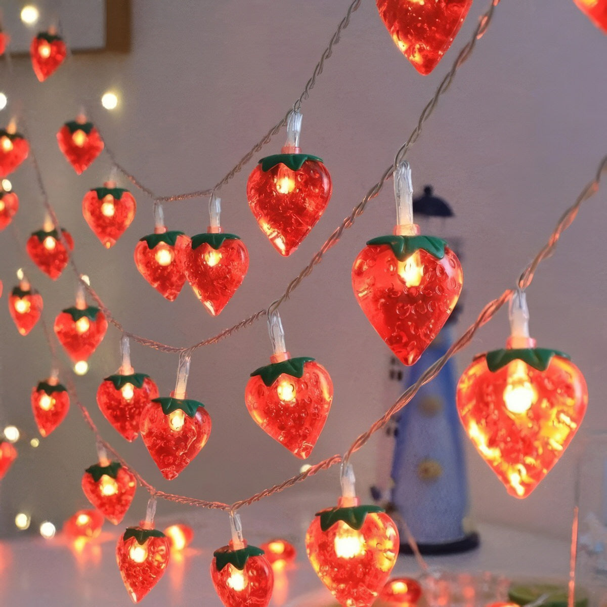 Dodaj radosny, ogrodowy blask do swojego wnętrza dzięki tych lampkom w kształcie truskawek. Ich intensywnie czerwone owoce i ciepłe światło sprawiają, że każde pomieszczenie staje się natychmiast bardziej przytulne i słodsze.