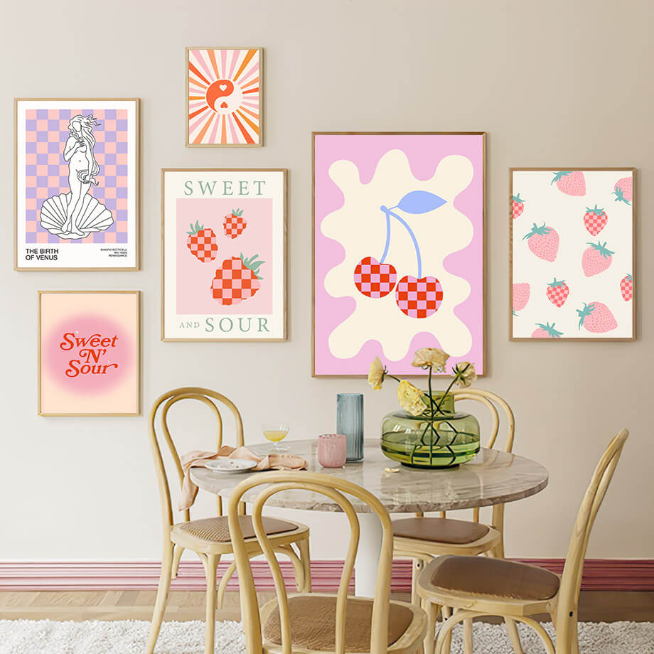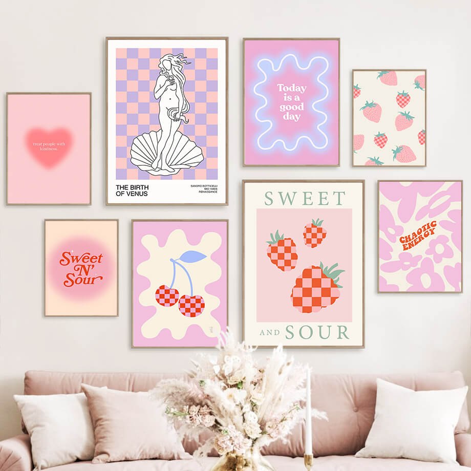 Ozdób ściany swojego pokoju pastelowymi plakatami na płótnie z motywem szachownicy i falistych kształtów. Te estetyczne plakaty galeryjne idealnie pasują do wnętrz w duńskim, pastelowym stylu. Najlepszy efekt uzyskasz wybierając minimum 5 sztuk z zestawu.