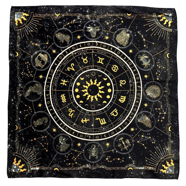 Użyj tego tarota zodiakalnego jako obrus lub tkaninę dekoracyjną na ścianę.