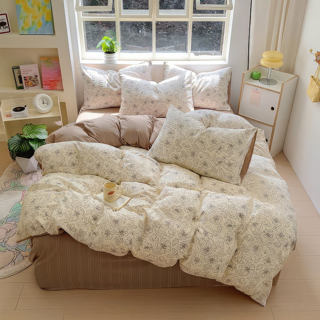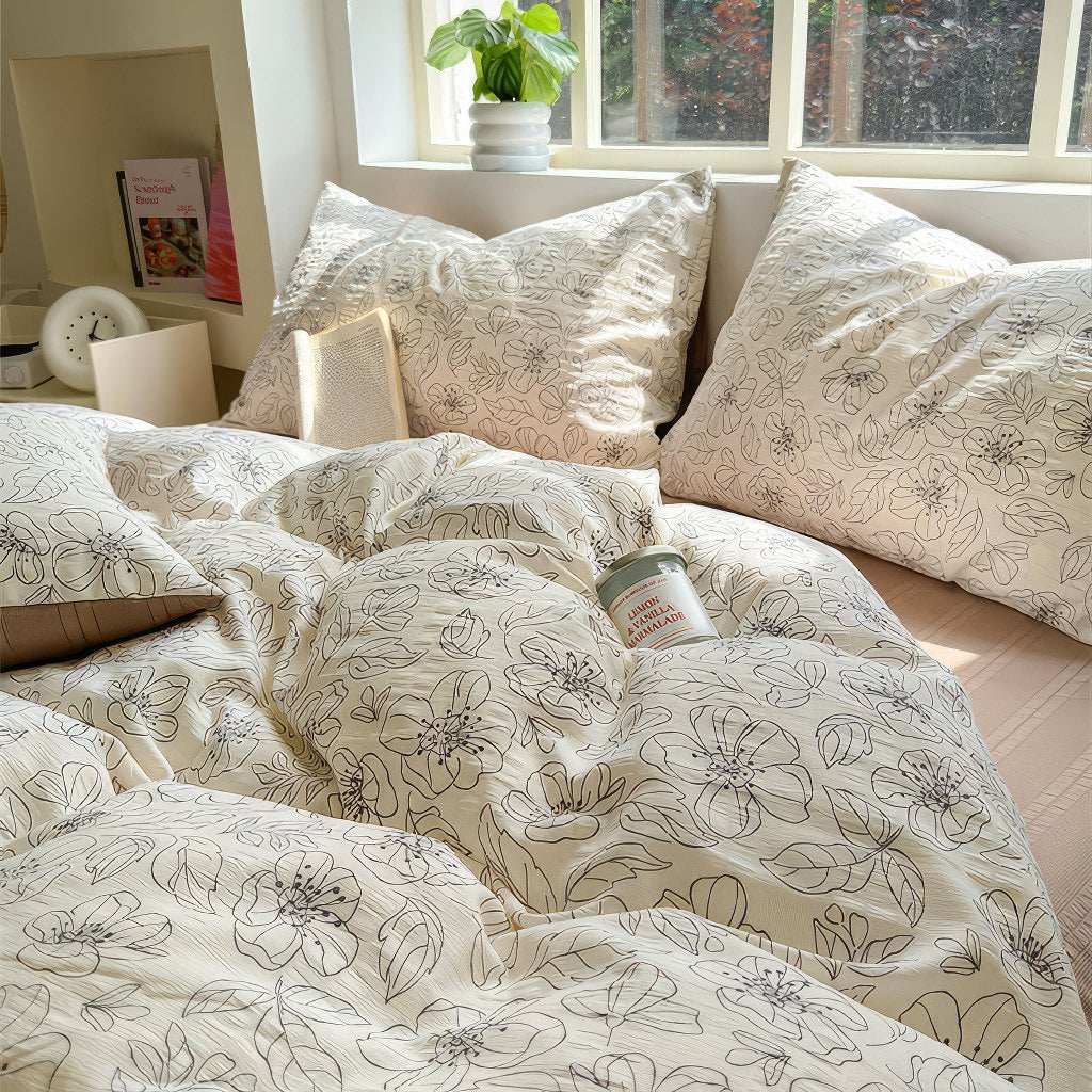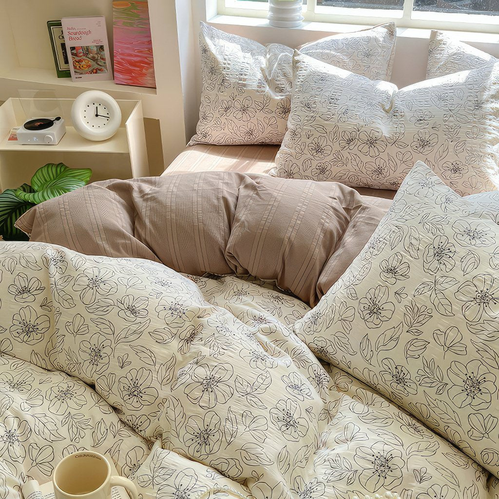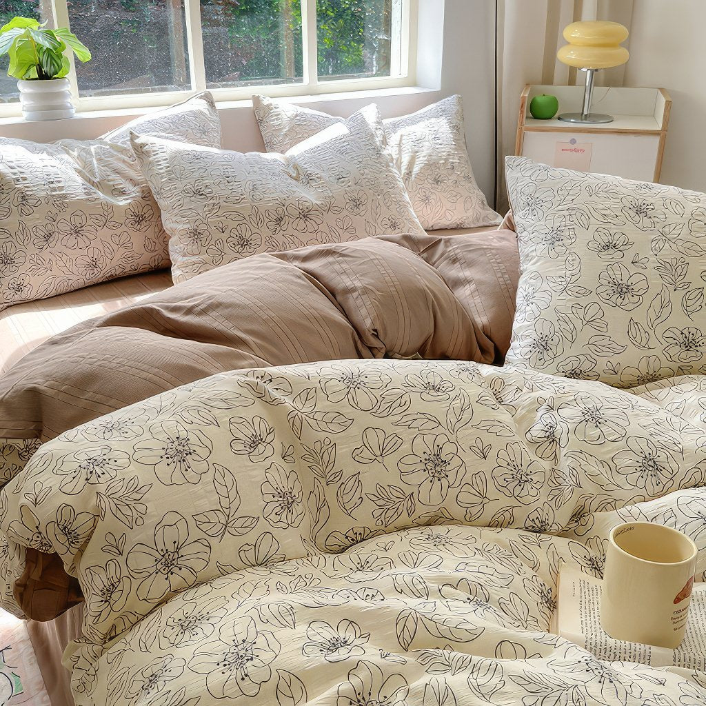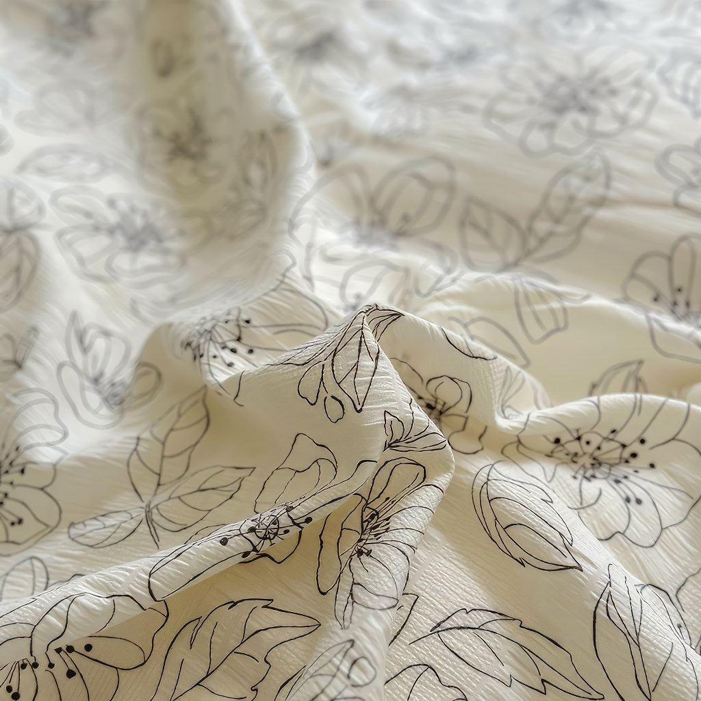 Odmień swoją sypialnię dzięki tej eleganckiej pościeli z motywem kwiatowym, która doskonale doda wyrafinowania każdemu wnętrzu. Wzór przedstawia delikatne czarne kwiaty narysowane cienką linią na miękkim kremowym tle, tworząc uspokajający, minimalistyczny wygląd, który pięknie komponuje się z różnorodnymi stylami, szczególnie z nowoczesnym lub cottagecore. Wykonana z wysokiej jakości tkaniny, zapewnia przytulne, oddychające uczucie, idealne dla komfortu przez cały rok. Subtelny, a jednocześnie szczegółowy wzór kwiatowy wprowadza odrobinę natury do wnętrza, czyniąc Twoją przestrzeń bardziej spokojną i zachęcającą do odpoczynku. Połącz pościel z neutralnymi lub pastelowymi dodatkami, aby stworzyć relaksującą oazę, w której możesz się zrelaksować. Ten zestaw to nie tylko praktyczny element wyposażenia sypialni — to deklaracja stylu dla osób ceniących dyskretną elegancję.