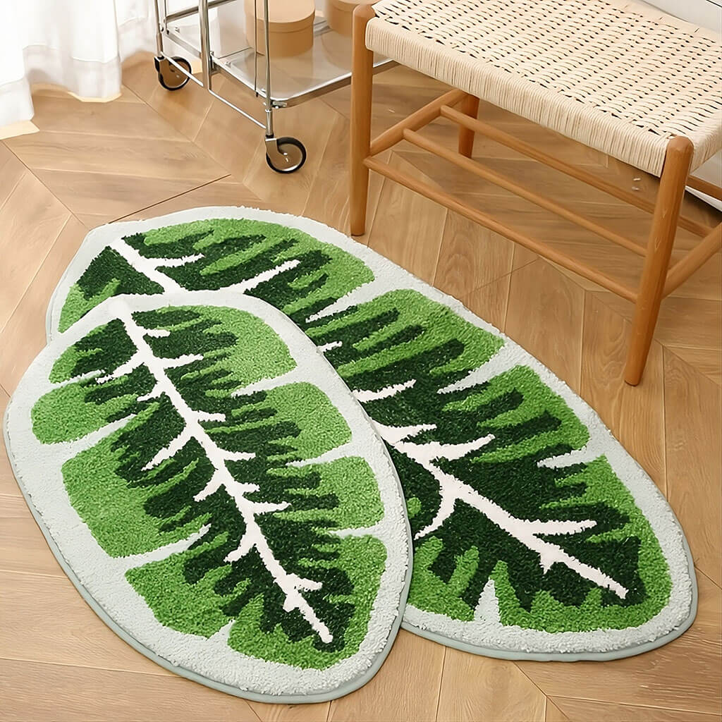Wprowadź do swojego wnętrza naturalny, tropikalny klimat dzięki temu dywanowi w kształcie liścia. Zaprojektowany tak, aby przypominał bujny, zielony liść monstery, dywan wnosi ożywczą nutę zieleni do domu bez potrzeby pielęgnacji żywych roślin. Głębokie odcienie zieleni oraz szczegółowy wzór liścia tworzą realistyczny, pełen energii efekt, który doskonale sprawdzi się w przestrzeniach inspirowanych naturą lub stylu boho. Miękki i puszysty, idealny do dodania przytulności w sypialni, salonie czy nawet w przytulnym kąciku. Ten dywan z łatwością wzbogaci Twoje wnętrze, oferując tropikalną estetykę, która jest świeża i zapraszająca.