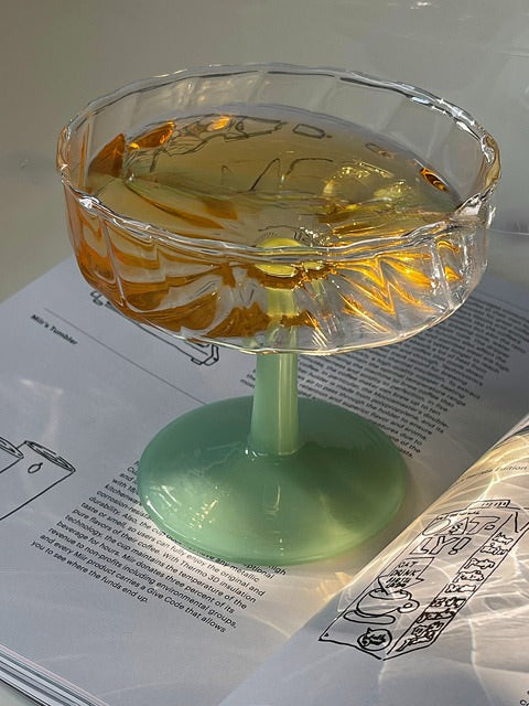 Estetyczny, vintage kieliszek do wina z matową, pastelową nóżką oraz wykończeniem w stylu vintage na górze. Idealny prezent lub ozdoba na półkę do pokoju w stylu francuskim, coquette lub duńskim pastelowym.