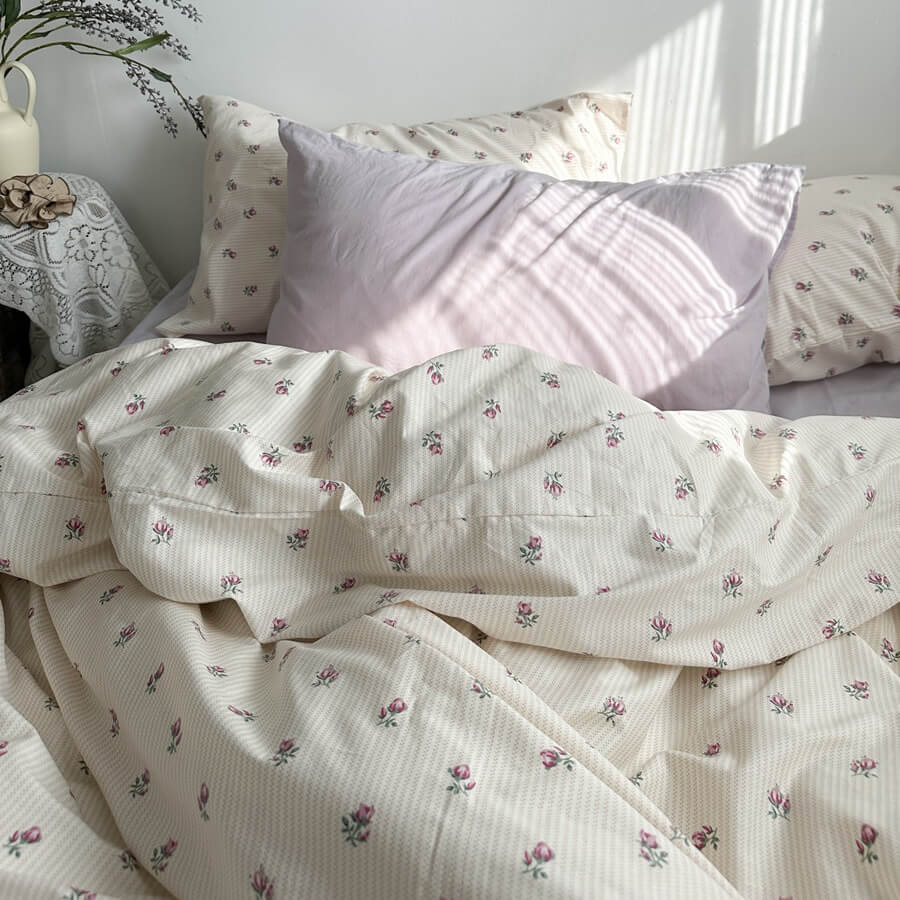 Dodaj przytulny, vintage’owy akcent do swojej sypialni dzięki tej uroczystej pościeli w drobne kwiatuszki z motywem retro. Zestaw doskonale pasuje do wnętrz w stylu cottagecore, grandmacore, coquette oraz wielu innych estetycznych aranżacji.